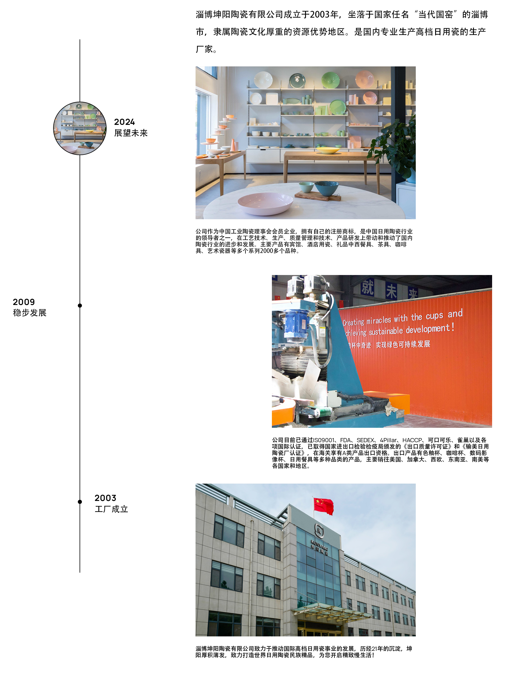 淄博昆阳陶瓷有限公司成立于2003年,专业生产陶瓷/新骨瓷材料产品,包括陶瓷/新骨瓷贴花马克杯和碗,陶瓷/新骨瓷压花彩釉马克杯和手绘制品。是淄博市著名的陶瓷企业。我厂生产技术实力雄厚,占地面积42000多平方米,现有熟练工人近350人,拥有自动化智能生产线7条,全套生产线设备。从原料生产到制土定型、上釉、烧制、贴花、包装,年产量可达4000万件。